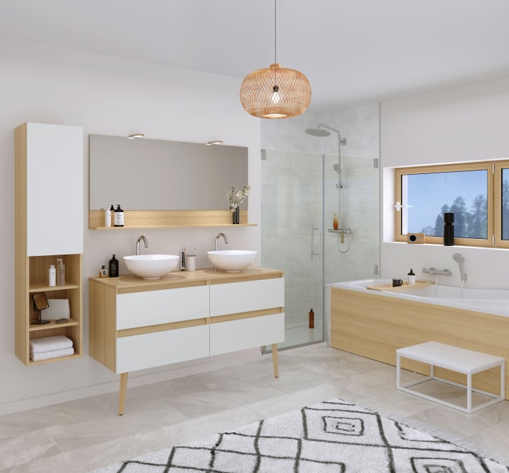 Total look (façades avec corps de meuble assortis) ou Bicolore (façades avec corps de meuble chêne doré structuré)
