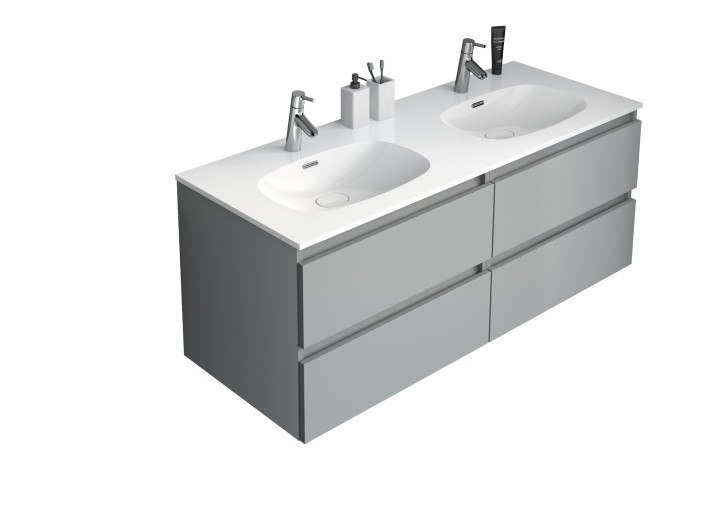 Ensemble meuble bas Intuitive L 140 cm, plan double vasque, miroir avec tablette et applique led | DELPHY - INTUITIVE - DOUBLE VASQUE - L140 cm