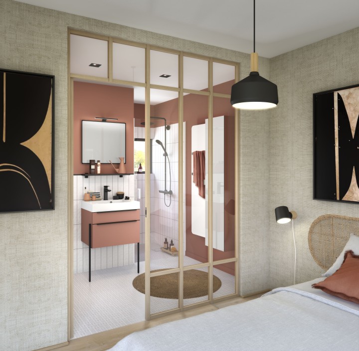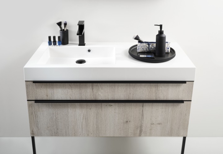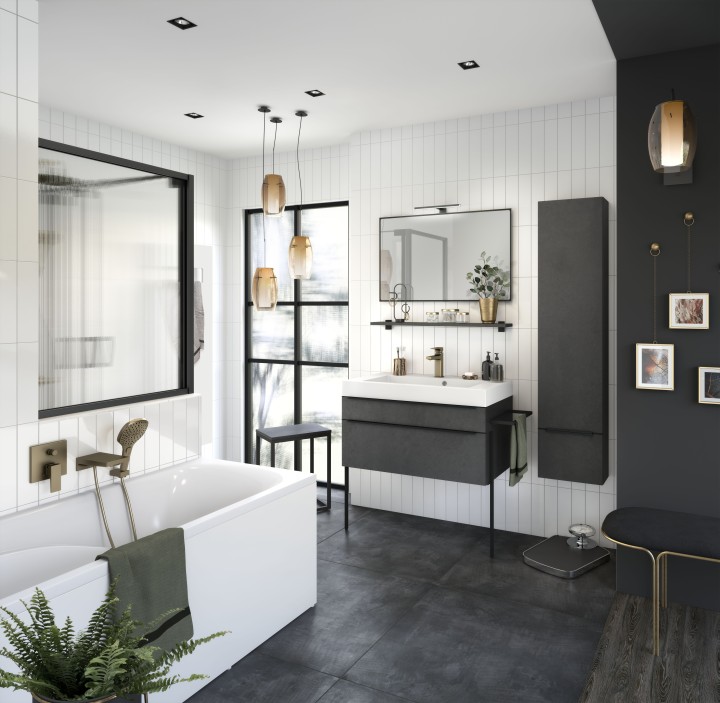 Ensemble meuble bas Inspiration, plan simple vasque, miroir H 55 cm et applique led | DELPHY - INSPIRATION