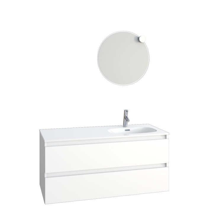 Ensemble meuble bas Intuitive, plan simple vasque à gauche ou à droite, miroir rond et applique led | DELPHY - INTUITIVE - SIMPLE VASQUE GAUCHE OU DROITE