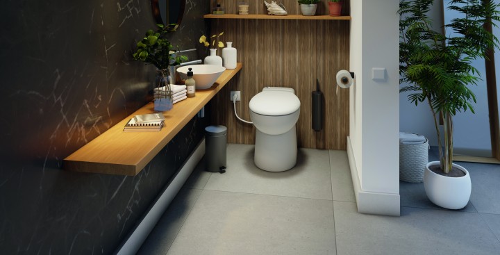 Sanicompact Pro permet d'installer des WC et lave-mains. Il offre une assise large. Il est doté du système de chasse Eco+ (1,8 L à 3 L). Il est équipé d'un abattant antibactérien à frein de chute et la céramique est anticalcaire.