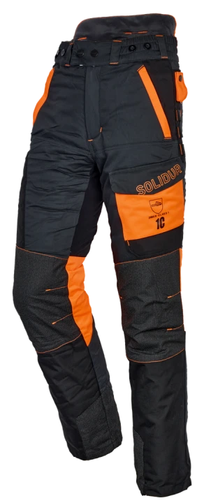 Pantalon de protection pour utilisateurs de scie à chaine Classe 1 (20ms) Type C (360°) coloris gris et orange, 5 couches polyester, Polycoton 245 gr traité anti-salissure à l'avant, nylon stretch à l'arrière, coloris gris et orange traité hydrophobe, 2 poches Italienne avant avec zip, 1 poche mètre, 1 poche clé à bougie, 1 poche plaquée sur jambe... Pantalon de protection pour utilisateurs de scie à chaine Classe 1 (20ms) Type C (360°) coloris gris et orange, 5 couches polyester, Polycoton 245 gr traité anti-salissure à l'avant, nylon stretch à l'arrière, coloris gris et orange traité hydrophobe, 2 poches Italienne avant avec zip, 1 poche mètre, 1 poche clé à bougie, 1 poche plaquée sur jambe gauche, 1 bride porte outils, 3 brides de fixation M.O.L.L.E, doublure Coolmax 140gr, renforts genoux, cuisse droite en Armortex et Kevlar, Ceinture élastiquée, boutons pour bretelles, 1 poche pansement, guêtres amovible avec crochets de fixation, conforme à la norme EN 381-5 type C classe 1