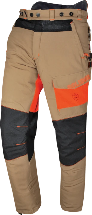 Pantalon de protection pour utilisateur de scie à chaine classe 1 (=20ms) Design A. 5 copuches 100% polyester, Spécial été, coloris beige, Avant Nylon 6.6 190gr/m² traité antisalissure et déperlant Teflon® Shield+. Arrière polyester stretch 4 ways 160g/m².Doublure Coolmax® 125g/m². Renforts genoux Armortex®/Kevlar ®. Système de ventilation par mai... Pantalon de protection pour utilisateur de scie à chaine classe 1 (=20ms) Design A. 5 copuches 100% polyester, Spécial été, coloris beige, Avant Nylon 6.6 190gr/m² traité antisalissure et déperlant Teflon® Shield+. Arrière polyester stretch 4 ways 160g/m².Doublure Coolmax® 125g/m². Renforts genoux Armortex®/Kevlar ®. Système de ventilation par maille ouverte, haut du pantalon pour évacuer l’humidité, derrière les genoux, le long de la cuisse, et au bas du dos pour évacuer la chaleur. 2 poches italiennes avant avec fermeture zip. 1 poche mètre anti-retour. Une poche plaquée avec rabat anti-poussière. Support clé à bougie. Bouton de fermeture Cobrax® by RIRI®.conforme à la norme EN 381-5 type A classe 1 VERSION PLUS LONGUE DE 7CM