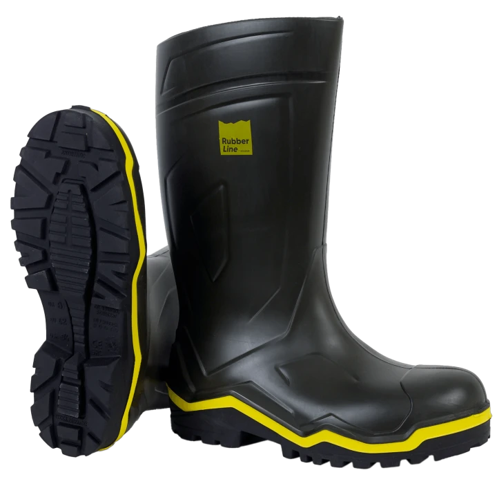 Bottes durables et résistantes en Solithane vert, légère, antibactérienne, isolant au froid (-50°C) et à la chaleur (+150°C), semelle en caoutchouc avec liseré jaune résistante aux lisiers et hydrocarbures. Norme EN ISO 20347 : 2012 O4 SRC CI Bottes durables et résistantes en Solithane vert, légère, antibactérienne, isolant au froid (-50°C) et à la chaleur (+150°C), semelle en caoutchouc avec liseré jaune résistante aux lisiers et hydrocarbures. Norme EN ISO 20347 : 2012 O4 SRC CI