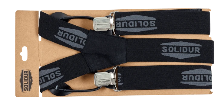Bretelles 3 EN 1 - pinces, bouton, tresse, adaptables sur l'ensemble des pantalons SOLIDUR, bande autoagrippante permettant d'ajuster la taille. TU