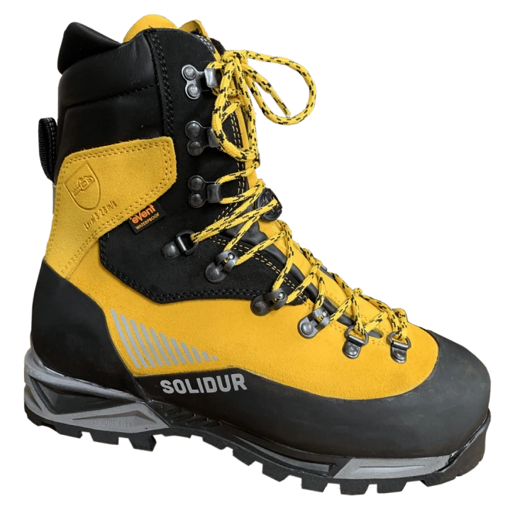 Chaussures de sécurité SEMELLE RIGIDE pour utilisateur de scie à chaine classe 3 (28m/s) Protection 8 couches, Embout acier, semelle anti-perforation composite, Tige cuir Perwanger, Montage soudé, Membrane imper-respirante EVENT® avec couture étanchée, Soufflet cuir, Semelle caoutchouc nitrile Vibram Winkler , Passe lacets à bille, large surbou... Chaussures de sécurité SEMELLE RIGIDE pour utilisateur de scie à chaine classe 3 (28m/s) Protection 8 couches, Embout acier, semelle anti-perforation composite, Tige cuir Perwanger, Montage soudé, Membrane imper-respirante EVENT® avec couture étanchée, Soufflet cuir, Semelle caoutchouc nitrile Vibram Winkler , Passe lacets à bille, large surbout de protection et Renfort latéral et arrière en cuir enduit de PU. Conforme aux normes EN ISO 20345 EN ISO 17249 Class 3 S3 WR CI HRO SRC