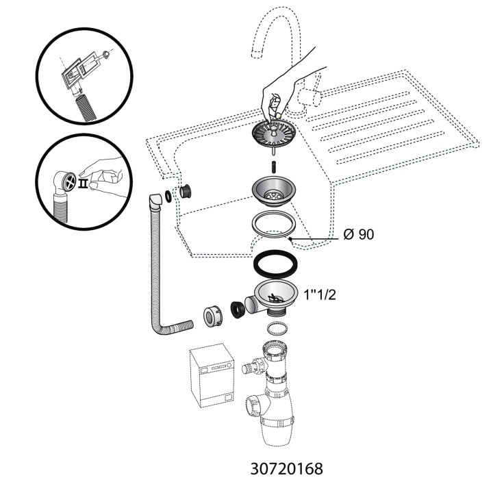 BONDE EVIER A PANIER INOX D90 | Vidages